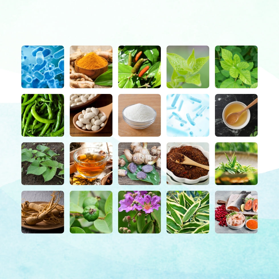 ポコスリムは、ターミナリアベリリカ(由来没食子酸)の機能をサポートする、17種の乳酸菌と5種のビフィズス菌を含む20種類の副素材を厳選して配合しています。